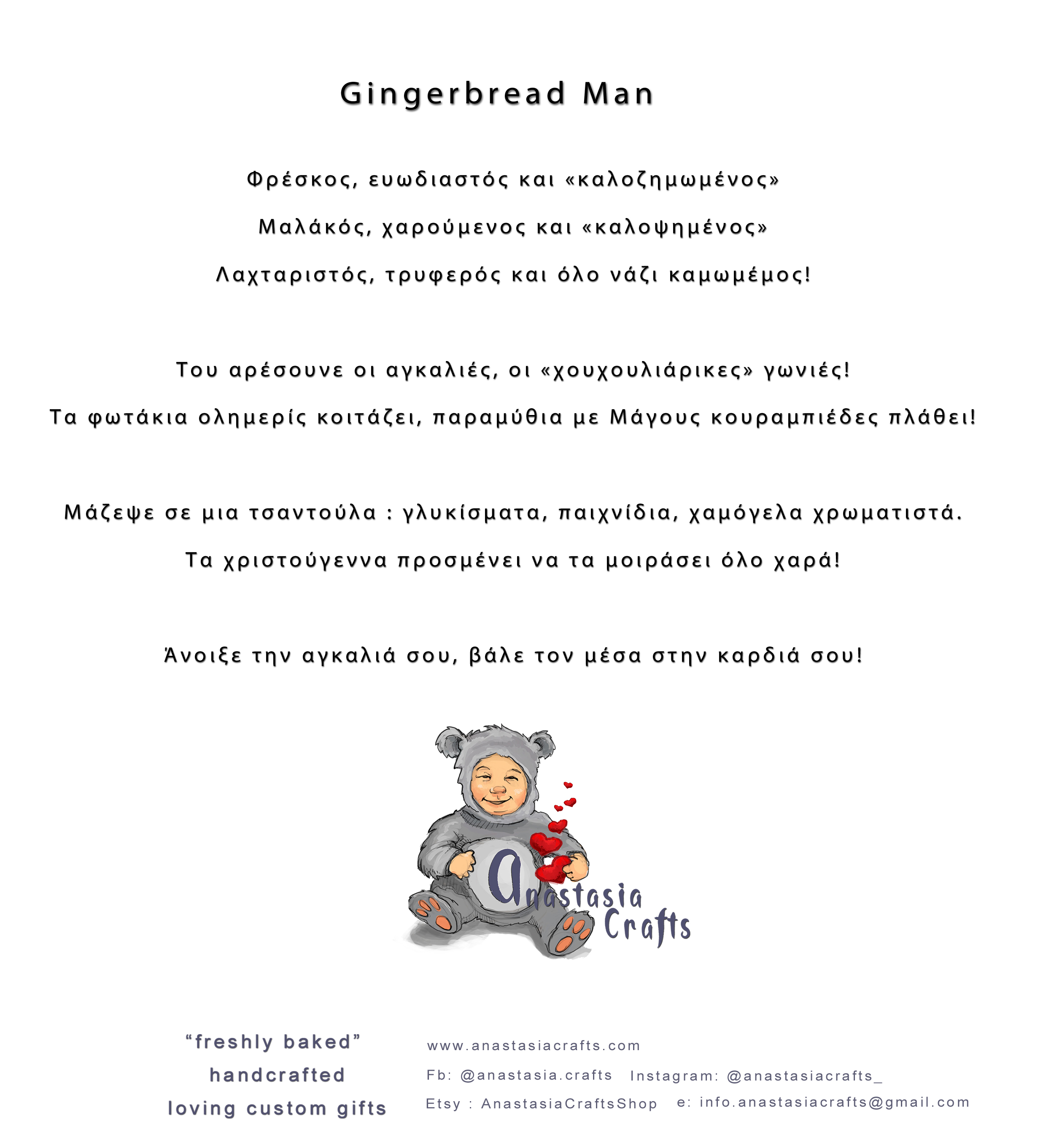 Από μια τέτοια λίστα δεν θα μπορούσε να λείπει μια χειροποίητη, μοναδική κατασκευή της @anastasiacrafts_ όπως ένας Gingerbread man (Custom Gingerbread Man-fabric character: 0.60cm*0.25cm , 100% cotton, soft, staffed), Limited edition 10, μόνο!...